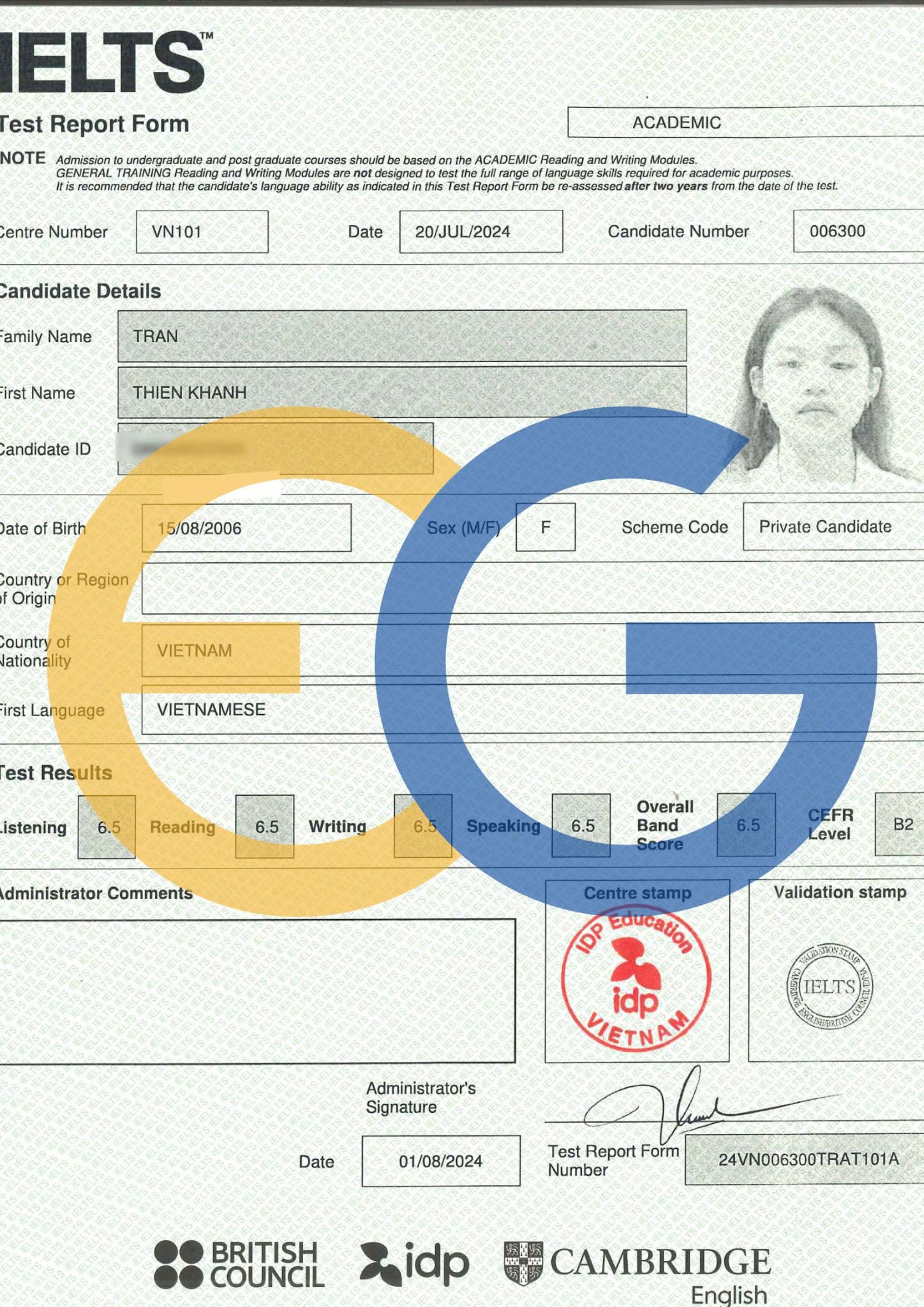 Khi Thiên Khánh đến với English Guide, bạn đã đứng trước một thử thách không hề dễ dàng đó là: chưa từng học IELTS nhưng cần đạt band điểm 6.5 trong vòng 6 tháng – một mục tiêu không nhỏ, đặc biệt khi phải cân bằng với cả lịch học dày đặc trên trường của một học sinh chuyên Hóa lớp 12. Tuy nhiên, sau khi nghe tư vấn từ trung tâm, Khánh càng thêm tự tin và gạt đi nỗi lo lắng, quyết tâm không để thời gian gấp gáp làm mình chùn bước.